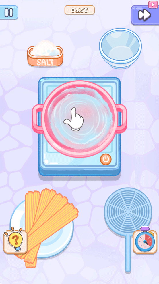 唯美舒适的氛围:精美的手绘视觉效果和动感十足的动画,让每一道菜肴都充满乐趣。