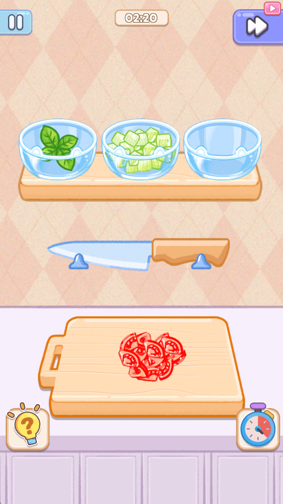 通过互动烹饪小游戏发挥您的创造力和运动技能。 切片、切丁、搅拌和装饰,尽善尽美!