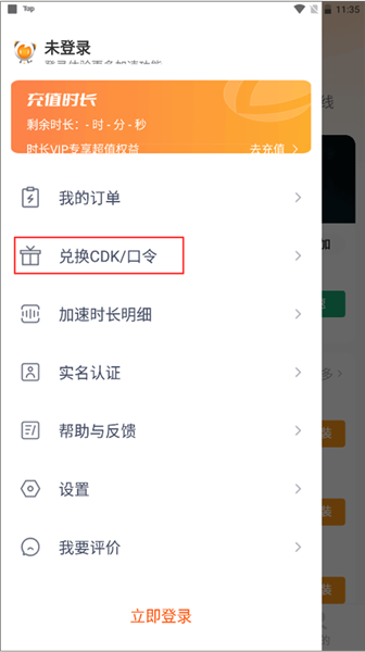 2、就自动进入到个人中心界面,在这里你会看到我的订单、兑换CDK/口令、加速时长明细、实名认证等功能,选择“兑换CDK/口令”。