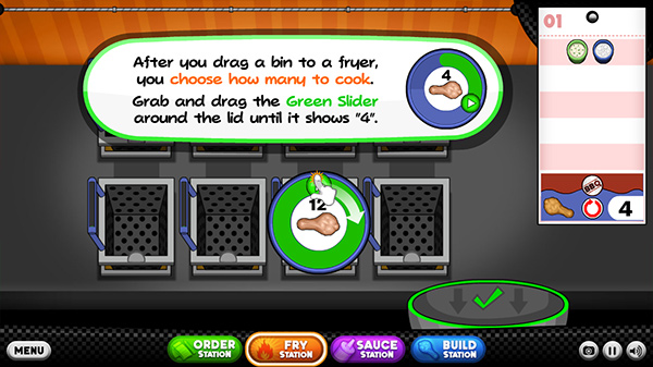 2、来到老爹炸鸡店,玩家首先要接待客人;