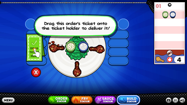 8、摆盘完成后,玩家把客人的下票贴在牌子上即可给客人上餐;