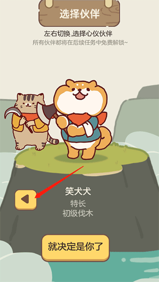 1、刚进入游戏可以挑选自己的伙伴,点击箭头可切换