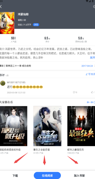 3、点击一本自己喜欢的小说,进入阅读界面,可以下载和加入书架;