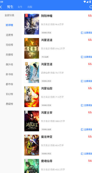 2、拥有各种类型的排行榜,大家可以根据自己阅读喜好自由选择;