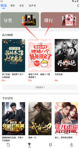 1、进入软件,能够在推荐板块看到优质小说,还可以点击排行榜;