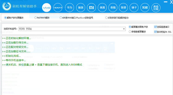 功能强大:支持OPPO、VIVO、小米、魅族、华为、三星、乐视、坚果、酷派等品牌机型一键解锁!率先支持最新款OPPO A9、A5、R15梦境、VIVO NEX系列×27系列NEX等最新机型解锁