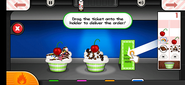 8、将制作好的纸杯蛋糕交付给顾客,收获金币奖励完成订单。