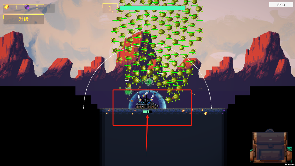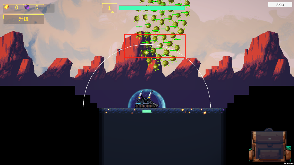 初始武器火力有限,可通过收集金币升级武器属性来提升输出强度,应对高强度敌潮。