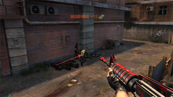 爆头机制设计提升爽感,瞄准僵尸头部会出现红色瞄准提示,命中后触发爆头特效,爆头伤害是普通攻击的 3-5 倍,快速型与技能型僵尸被爆头后会直接死亡,抗揍型僵尸爆头后也会大幅减少生命值,降低战斗难度的同时提升射击快感;