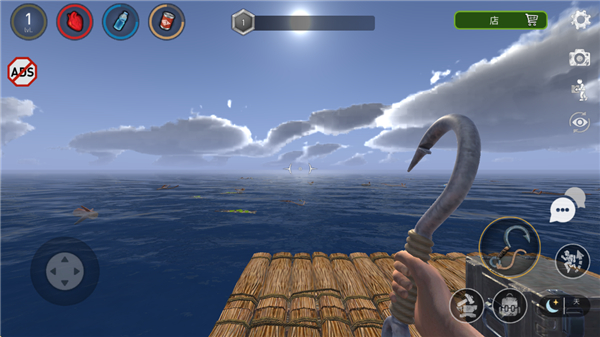 木筏生存中文版是一款冒险生存类型的游戏,在游戏中玩家身处大海,在木筏上不断的漂流,使用钩锁来收集各种物资,帮助玩家努力的生存下来吧,游戏操作起来非常简单,新手玩家也可以轻松游玩。