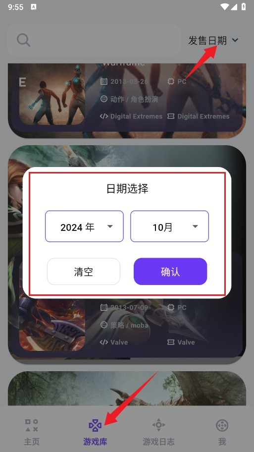 4、游戏库中包含了大量的游戏资源哦,在该界面中你还可以通过发售日期来查看游戏产品。
