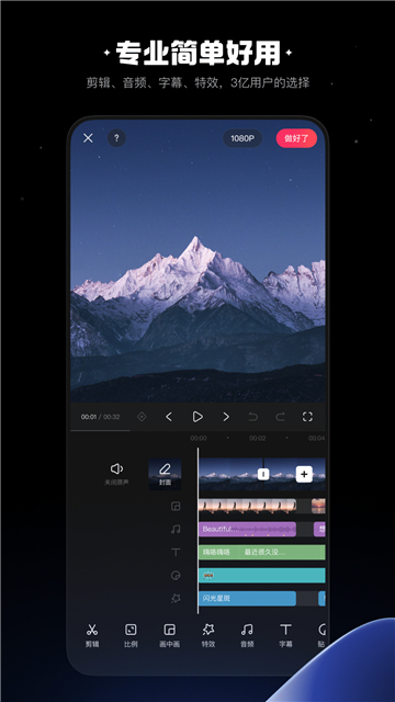 内置多种滤镜和调色工具,能够快速提升视频的画面质感,让作品更具视觉冲击力。