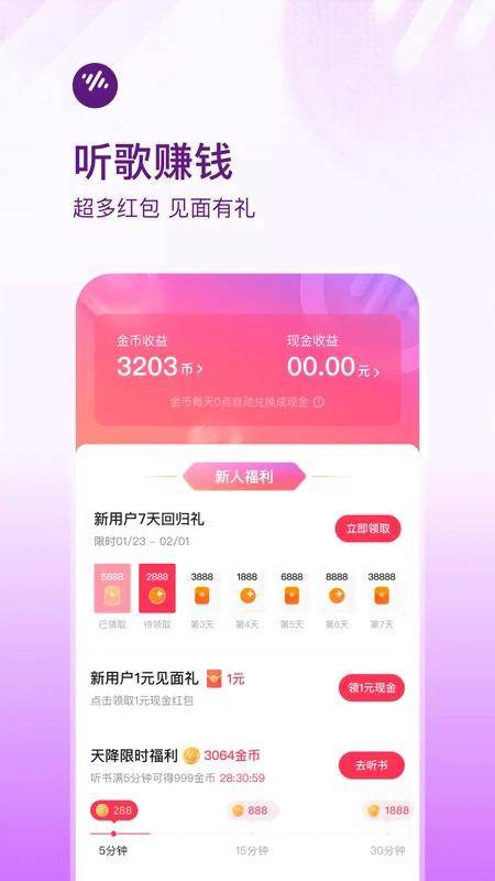 番茄畅听音乐版2026最新版是一款音频服务平台,资源库持续更新,覆盖全年龄段用户偏好。界面简洁操作流畅,支持离线缓存、智能推荐和多端同步,边听边赚金币的玩法真实可提现,无需充值也能享受高品质音效与无广告沉浸体验。