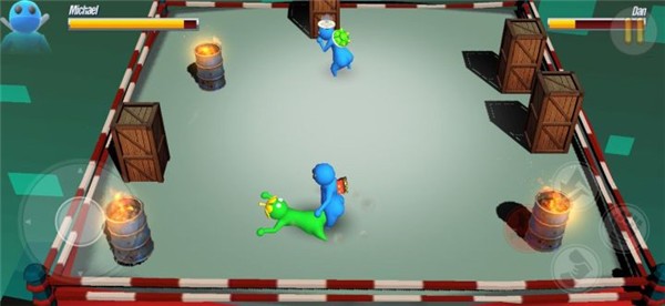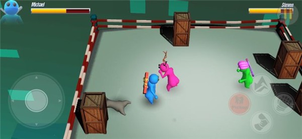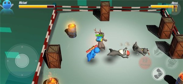 左右移动、跳跃、重击、抓取——四键掌控全部混乱源头。别指望稳扎稳打,推搡、绊倒、背摔、空中连踢,一切动作都裹着弹性物理引擎的不可控魅力。