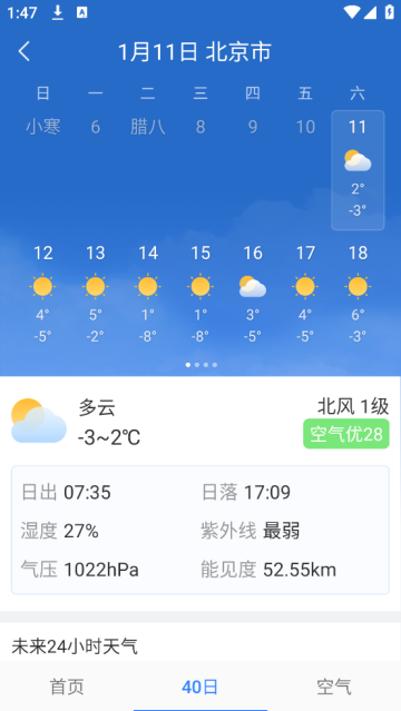 无广告天气预报手机版是一款专注提供精准气象信息的移动应用,可实时更新未来24小时逐小时天气变化,并支持长达40天的中长期趋势预测。除常规温度、降水、风速等数据外,还集成地震速报功能,遇突发震情自动推送提醒,提升用户应急响应能力。