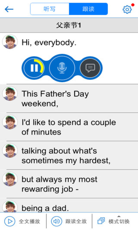 跟读时推荐启用“拟人交互界面”,右下角切换至“智能模式”,系统会根据你的语速和停顿自动调整响应节奏。所有设置均可在跟读页右下角齿轮图标中自定义。
