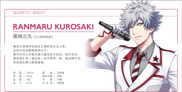 黑崎兰丸 西装领口微敞,袖口卷至小臂,说话带点沙哑的颗粒感。家族没落没压垮他,反而让他把摇滚魂焊进每个音符里。午休时间永远在长椅上睡得香,梦里或许正踩着鼓点冲向下一个舞台。
