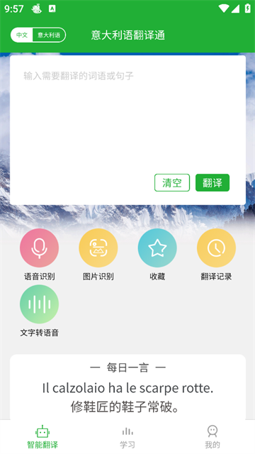 意大利语翻译通是一款功能实用、操作便捷的多场景语言转换工具,专为中文用户优化设计。无论是计划赴意求学、旅行观光,还是与意大利客户洽谈业务、处理日常沟通,它都能提供准确流畅的双向翻译服务。