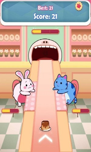 兔子和猫咪并非静止靶子,它们会挪步、转头、甚至伸爪轻拍屏幕催促,仿佛真在等你这一口及时的温饱。