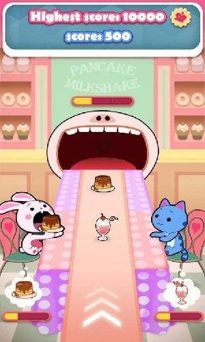 食物不是随机掉落的道具,而是有性格的“活物”:煎饼会打滑、奶昔会晃荡,你得预判它的轨迹,像接住一片飘落的云。