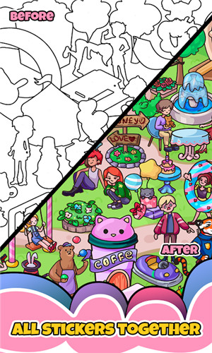 贴纸书填色拼图挑战是一款融合涂鸦乐趣与逻辑解谜的互动型休闲应用,适合儿童到成人的广泛用户群体。玩家打开这本数字贴纸册,面对大量风格多样的线稿图案,可自由选择色系上色,让花朵、动物或城堡跃然纸上。