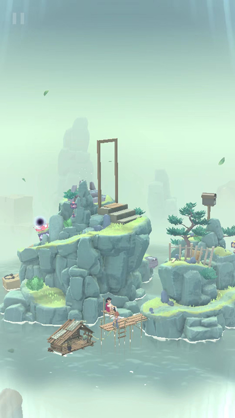 滑动屏幕引导二人穿行林间,避开错位的时间褶皱,抵达光球沉睡之处,指尖轻点即刻拾取。