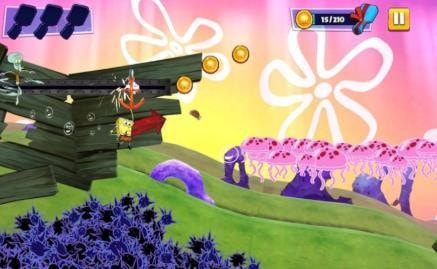 游戏中玩家需要操控海绵宝宝在不同的场景中奔跑、跳跃和躲避障碍物,完成各种任务目标。每个关卡都设计了独特的挑战元素,考验玩家的反应能力和策略思维。