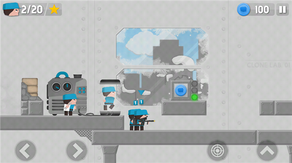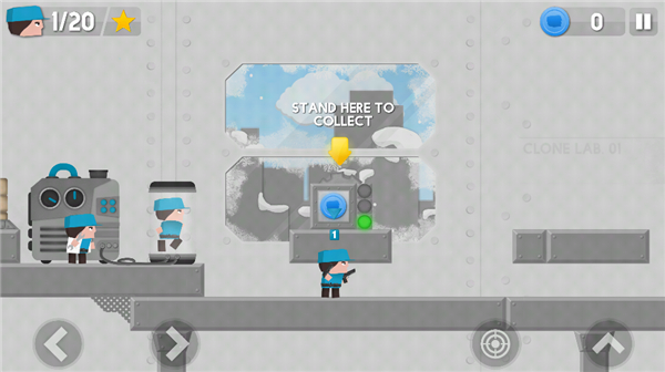 博士完成克隆后,你将实时操控这支先锋小队:左侧虚拟摇杆控制走位与转向,右侧按钮负责射击与跃升闪避。