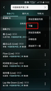 选择“下载”选项,系统将按当前网络环境智能匹配音质版本,一键存入设备本地。