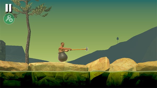角色手持锄头立于水箱之中,用手指在屏幕顺时针滑动锄柄,可触发向前跃起动作。起跳高度与飞行距离取决于滑动速度和角度,建议新手先在低难度区域熟悉惯性与落地时机。