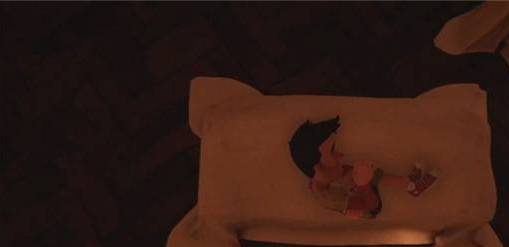 梦中场景转换,来到邻居家储藏室,一只空纸箱靠在墙边,搬来垫脚,攀上高处触碰到天花板上的暗格机关。