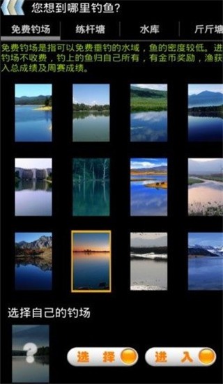 在钓场列表中挑选心仪地点,不同区域对应不同鱼种分布与环境挑战。