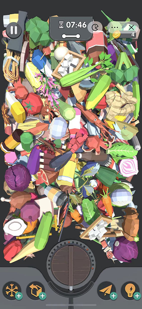 优先清理体积较大的食物模型,比如整只烤鸡或巨型汤圆,它们占据空间多,移除后下方隐藏的小食材更容易浮现。