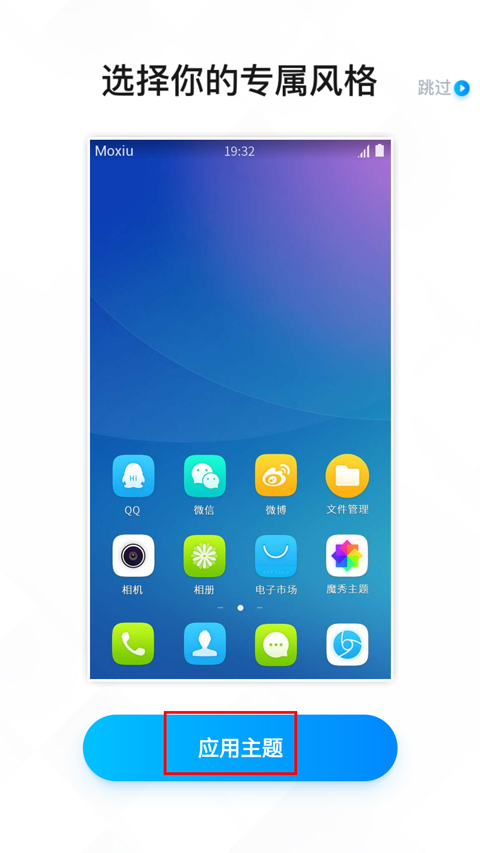 安装完成后打开应用,浏览并选中心仪的主题,点击“应用”按钮完成初步配置;