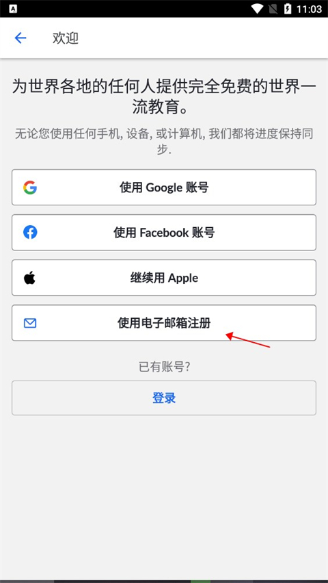 系统默认推荐邮箱注册方式,输入常用邮箱地址即可开始身份绑定。