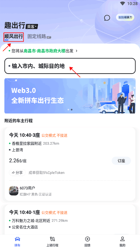 新用户默认以乘客身份启动,进入拼车页后选择“顺风车”,输入出发地与目的地,系统将自动呈现当日可匹配的合乘路线。