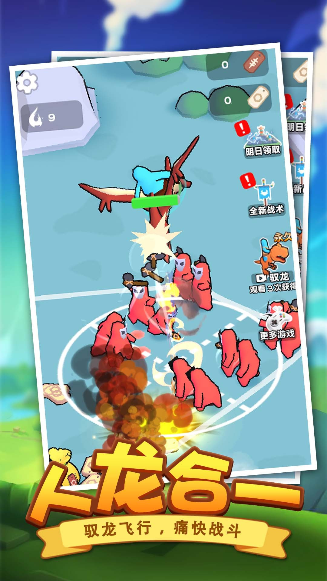 没有浮夸光效,只有粗粝的像素质感与扎实的打击反馈。恐龙咬合时的骨骼震音、战旗倒地时的尘土飞扬、卵壳碎裂瞬间的微光闪烁,细节藏在帧帧手绘动画里。