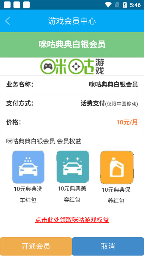 点击游戏会员中心,开通指定商家会员身份,部分权益包含定期发放洗车抵扣券。