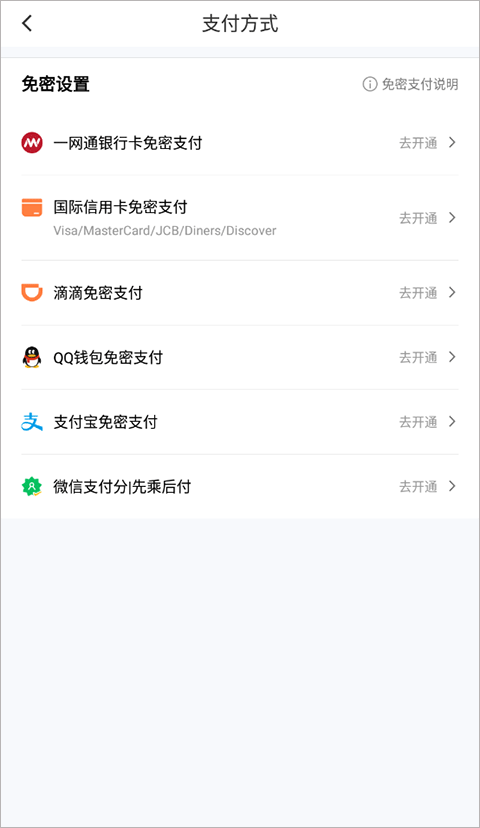 在免密支付列表中,选择已开通的支付方式,点击对应开关即可关闭,操作即时生效。