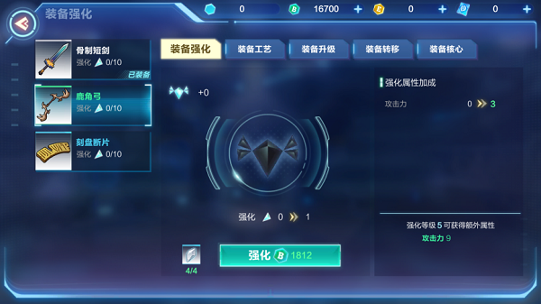 强化依赖比特与闪耀晶石两种资源,前者易得,后者可通过活动或商城补充。强化等级每跨入一个新台阶,都会触发额外属性跃升,界面左上角的数字直观反映当前段位成就。
