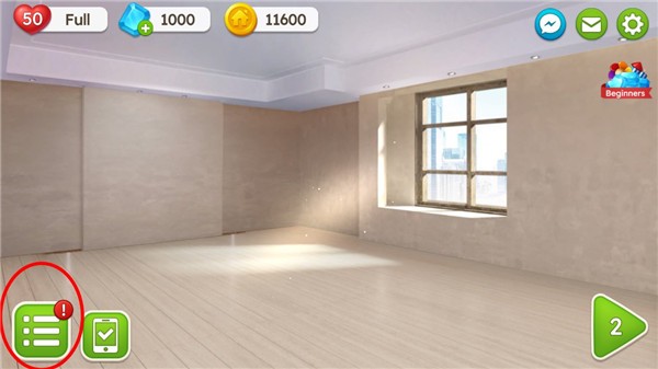 界面右下角的感叹号图标是装修入口,轻点即可进入布置模式,自由调整每一件物品的位置与朝向。