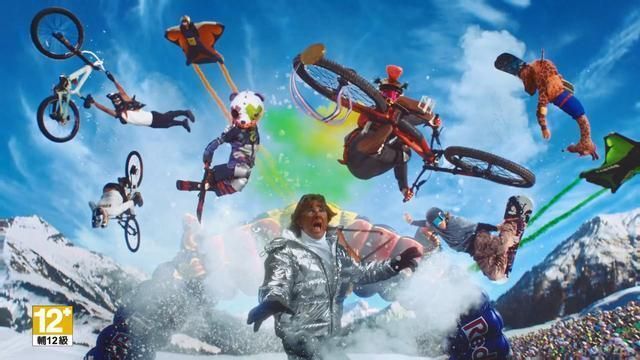 镜头语言充满电影张力:慢镜捕捉腾空瞬间的衣角飘动,追尾视角展现千钧一发的擦肩而过,第三人称广角则呈现群山环抱下的渺小身影与磅礴动感。