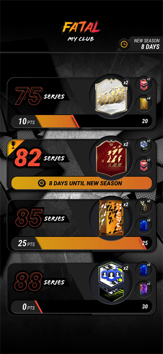 MODES中的CLASSIC玩法以属性对决为核心,涵盖射门精度、盘带稳定性、防守压迫性等维度。区别于传统征召,该模式引入动态升级机制:胜局获10点成长值,平局得8点,败北仍有5点积累。这些数值能推动球员从基础青铜逐步蜕变为高光特殊卡。
