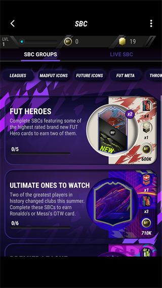 PACK系统主打轻度养成体验,免费开启的铜卡包虽概率随机,却是完成SBC挑战的基础弹药库。DOTD每日开包任务稳定产出额外收益,让日常登录更有期待感。