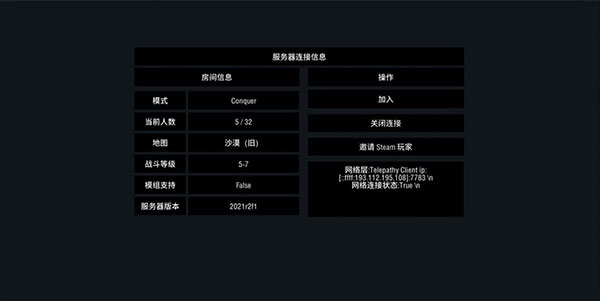 成功连接目标服务器后,界面将实时显示该服地图类型、当前在线人数与平均匹配时间。确认无误后点击“加入”,系统将自动完成队伍分配并载入战场。