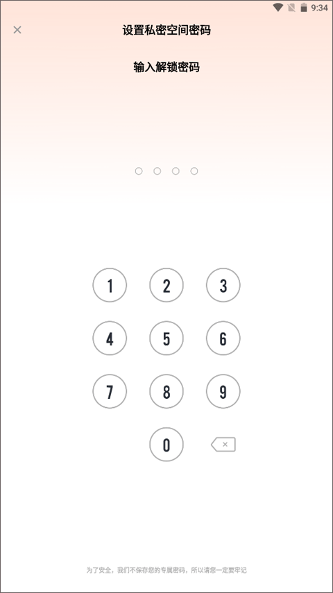 首次启用需设定访问凭证,输入两次一致的四位密码即可激活保护层,无需绑定手机号或邮箱。