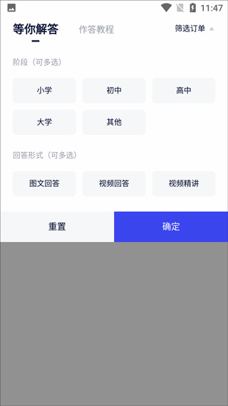 进入首页后点击“筛选订单”,在答题类型中选择“视频回答”或“视频精讲”,确认后直接跳转至录制界面。