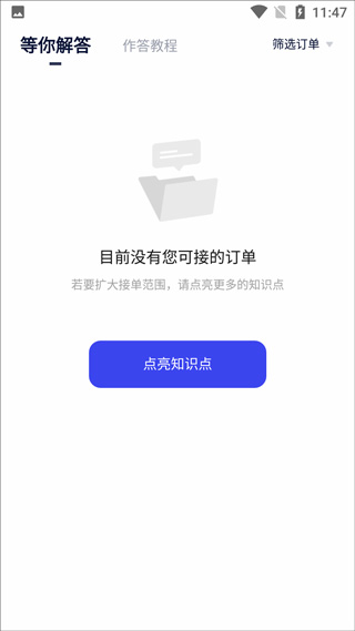 在首页底部导航栏点击“开始接单”,完成身份确认后,界面即显示“点亮知识点”标识,表示你已正式上线。
