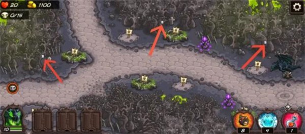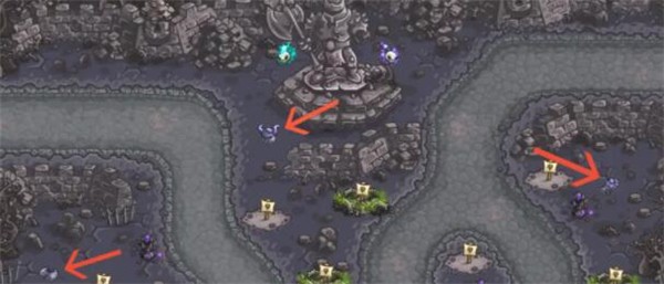 地图三处滑稽标记实为隐藏兵营:右上角出口涌出装甲厚重的熔岩守卫,沿左路迂回突袭;左侧西瓜图标点击后T-800模型溶解为银色液滴;右侧点击魔戒图案,岩缝中钻出咕噜,持续点击迫使其跃入沸腾岩浆,戒指随之消失。