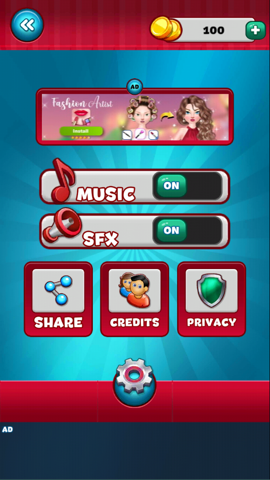 右下角齿轮状设置入口支持调节音效开关、背景音乐音量及震动反馈强度。